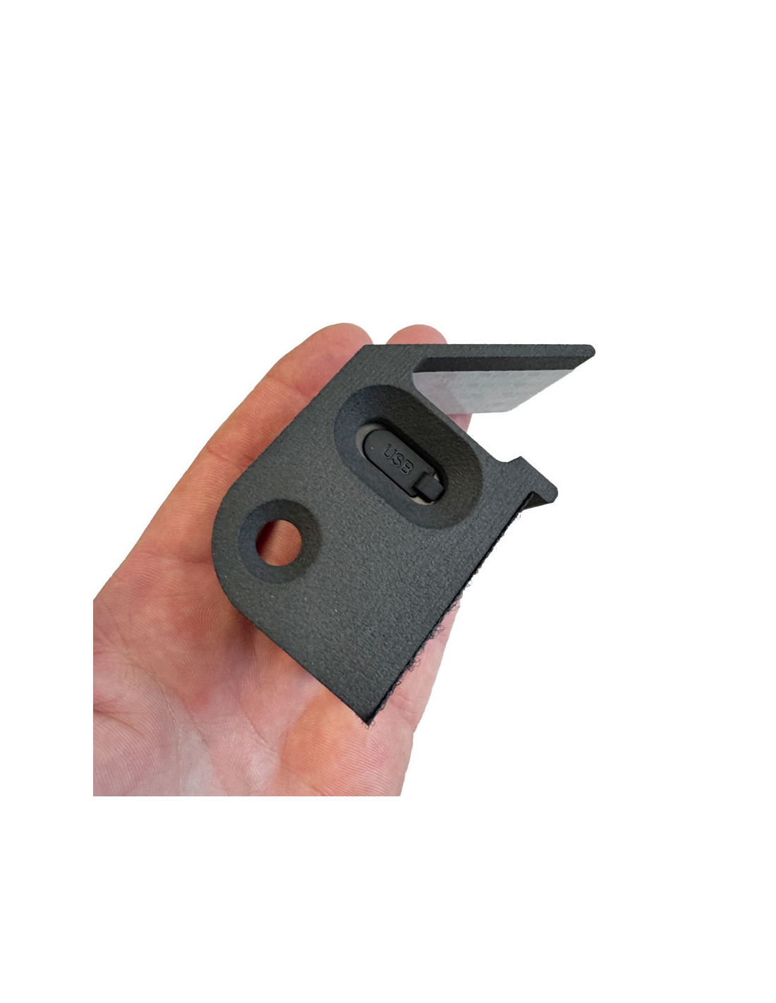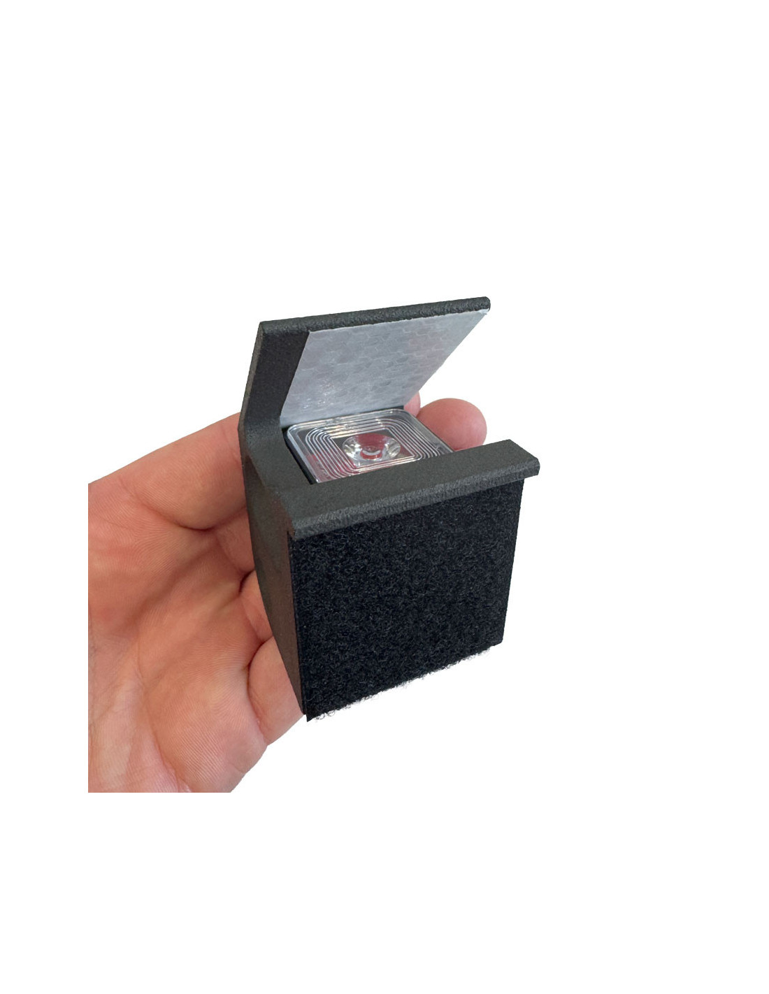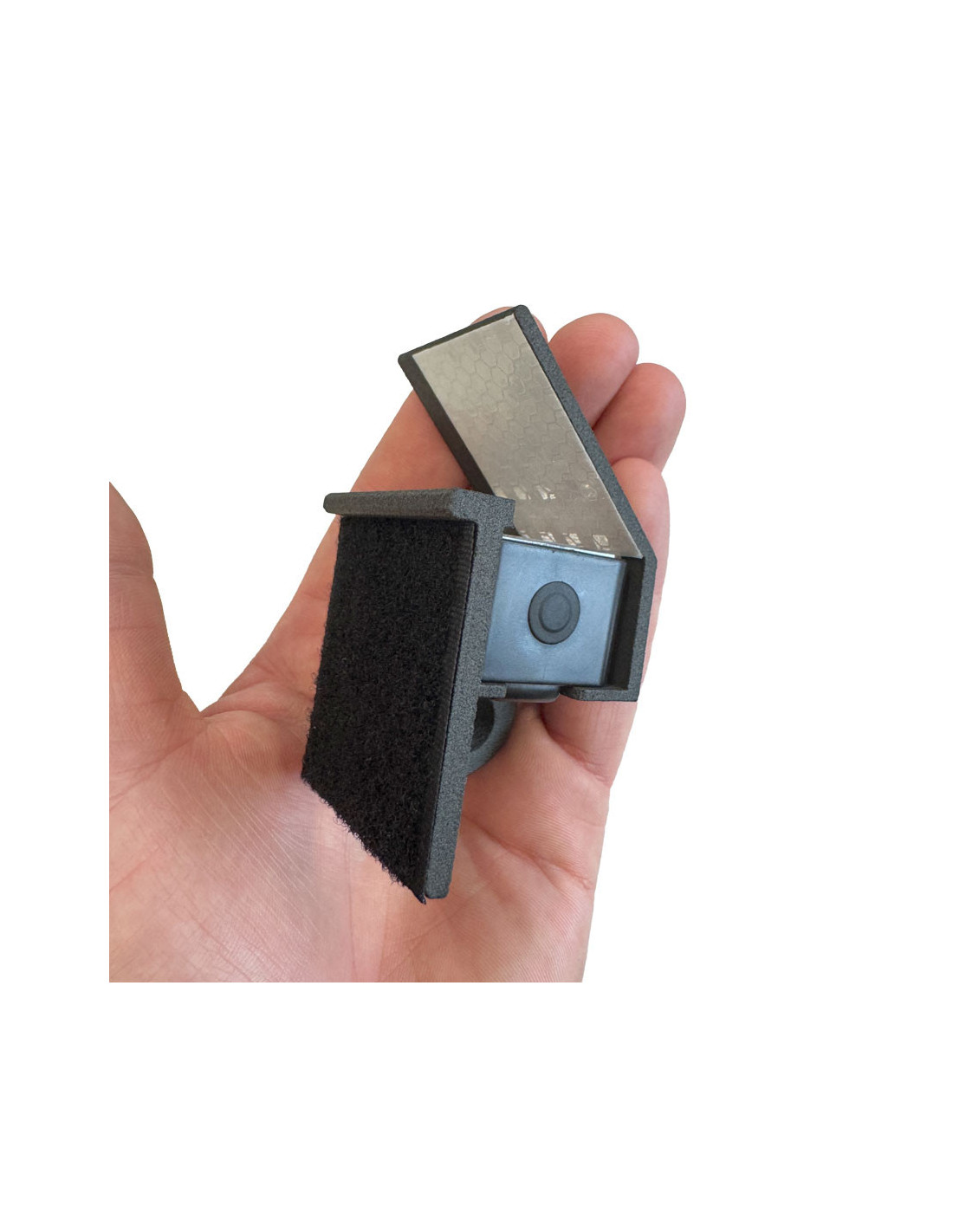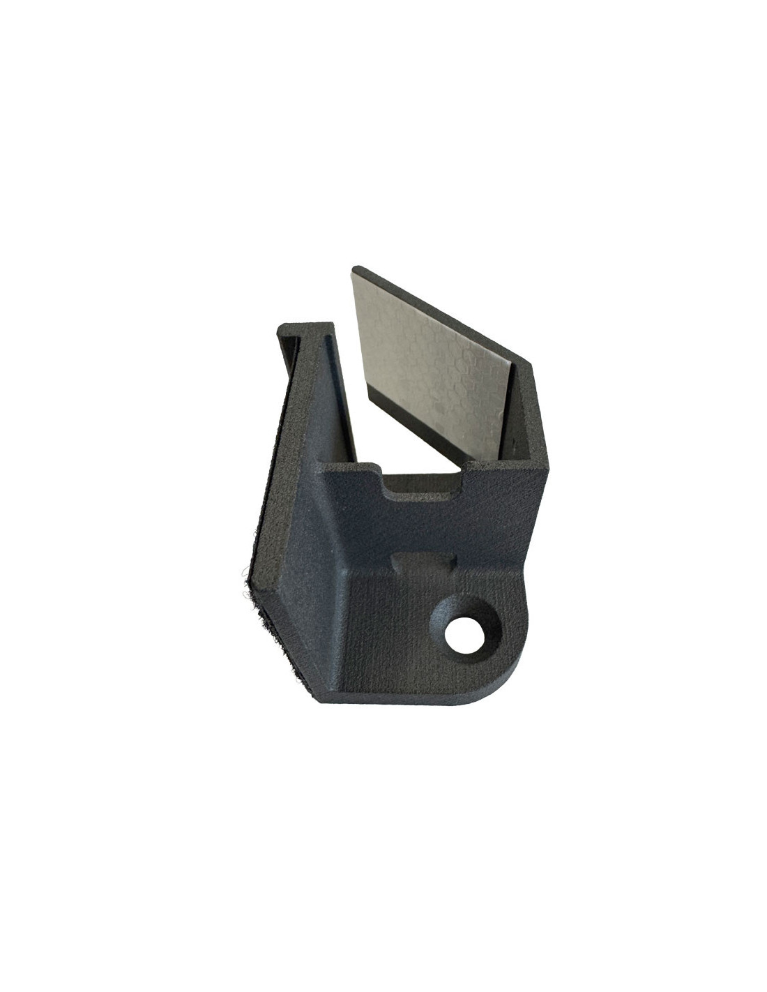This mount has been specifically designed to house the Hornady HIT impact detector, positioning it behind the KING GONG steel target, safely protected from direct impacts. The detector is securely integrated into the mount and fastened using high-strength double-sided Velcro.